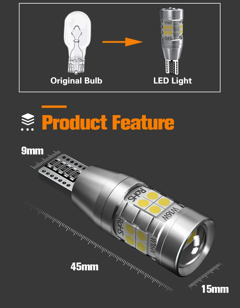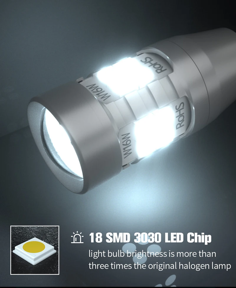 Посылка включает в себя: 2 светодиодных лампы заднего хода