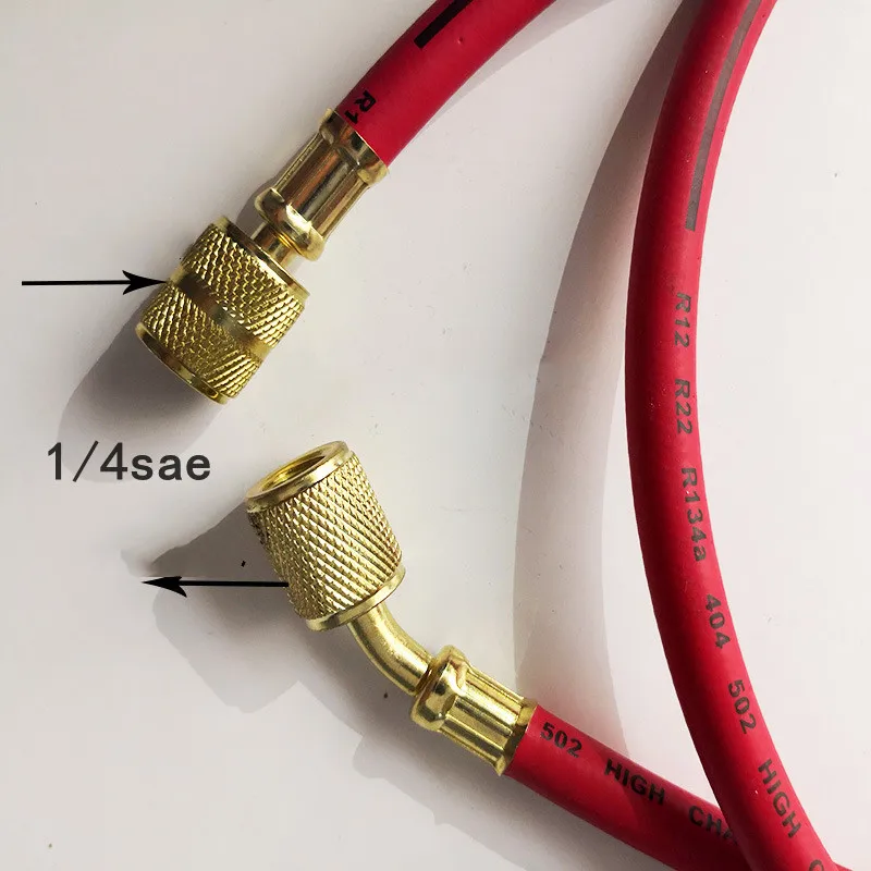Комплект шлангов для зарядки хладагента предназначен для соответствия требованиям SAE 1/4 "на обоих концах каждого шланга для пермутации хладагента.