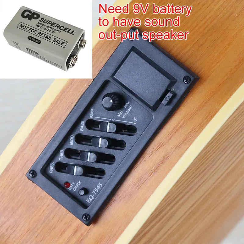 С эквалайзером нужен аккумулятор 9 В, чтобы иметь громкоговоритель, но не входит в комплект.