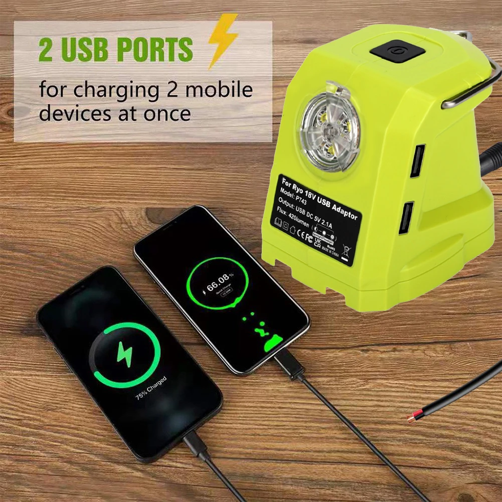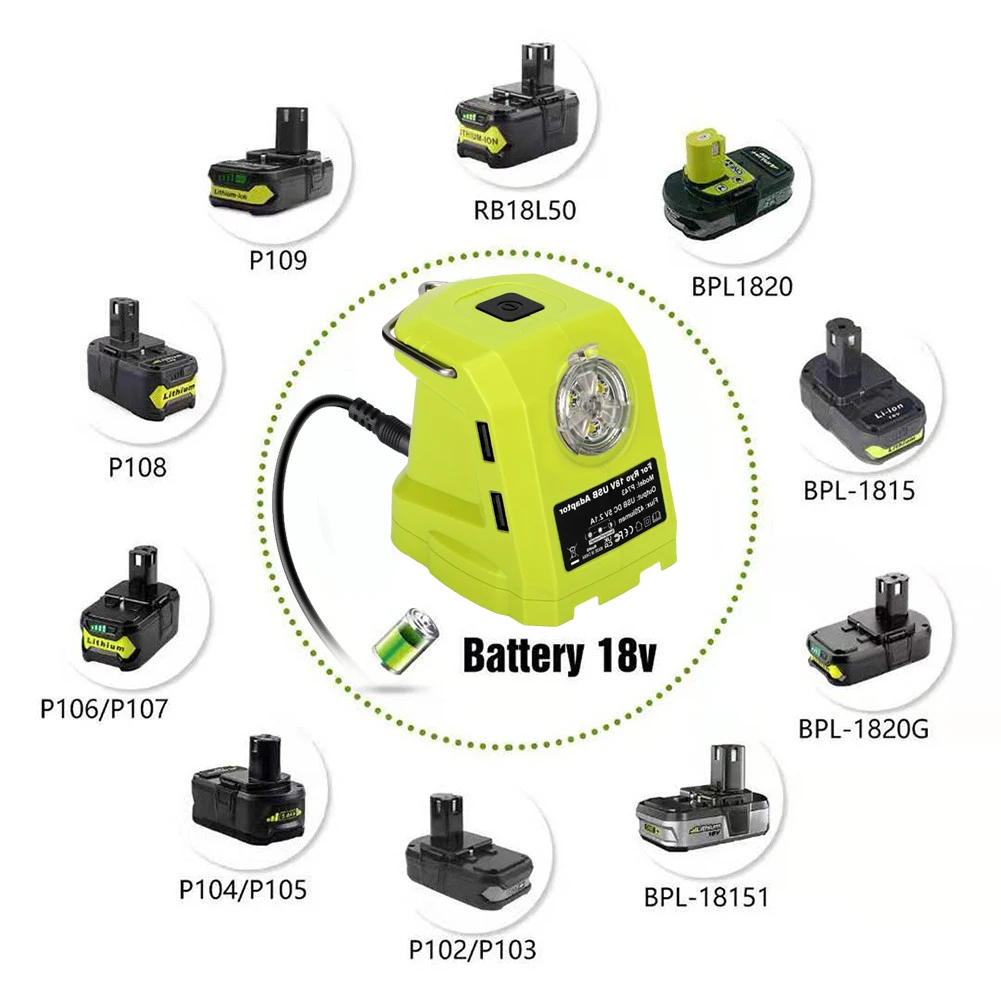 Для RYOBI 14,4 V/18V Лев Батарея двойной USB конвертер порт с светодиодный светильник литиевая батарея адаптер Аксессуары для электроинструмента