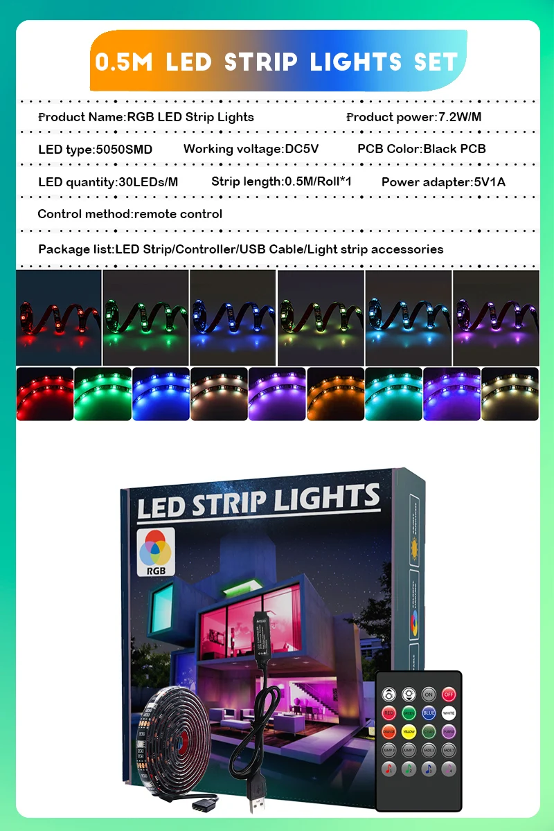 2. Входное напряжение: 5 В постоянного тока (5 В 2 А для 5-метровой светодиодной ленты 5050 150 светодиодов)