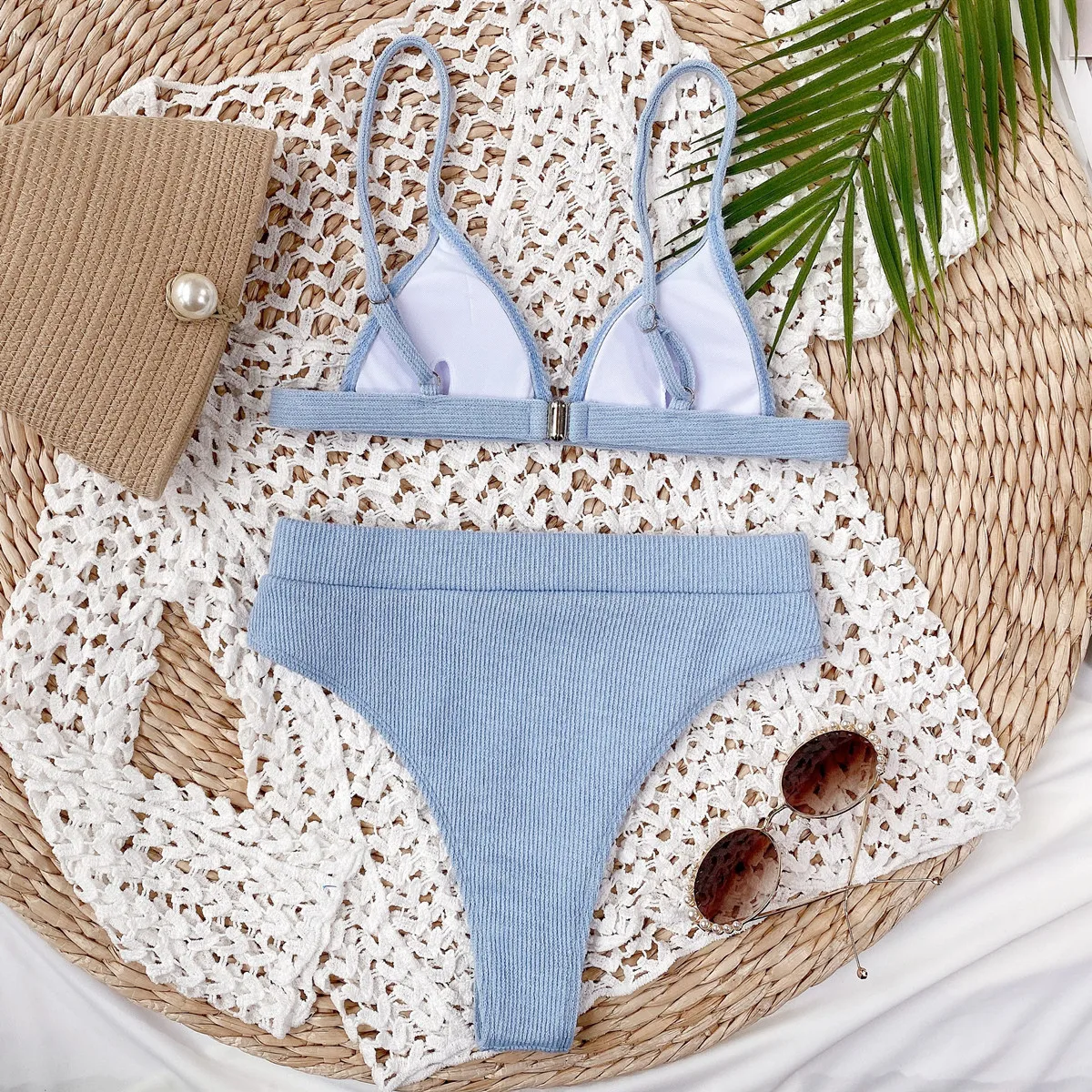 Женский раздельный бикини, летний сексуальный бандаж, дешевый купальник, бикини с высокой талией, красный стежок, Регулируемый пуш-ап, треугольное бикини