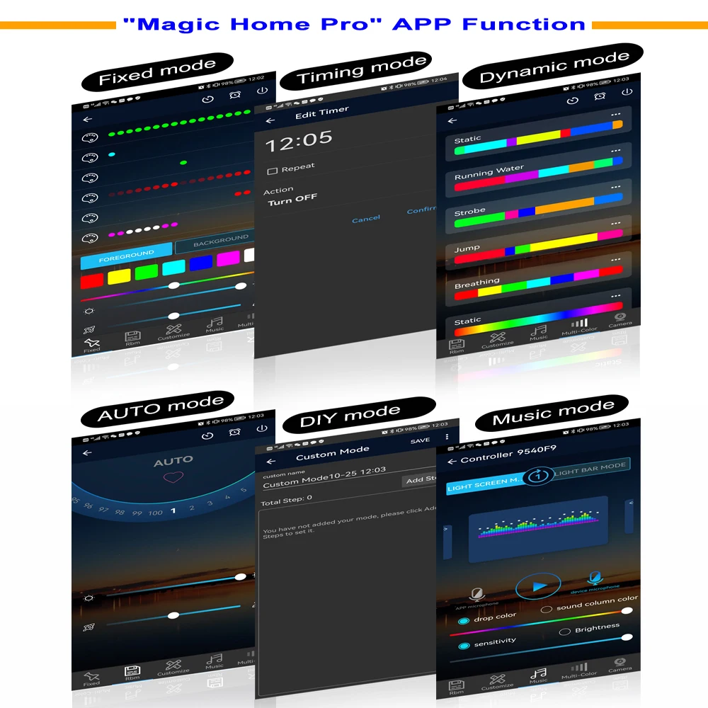 1. Может установить каждый IC отдельно и установить свет с различными режимами 2. Дополнительные Динамические режимы для градиента цвета или смешанных цветов: статические, асинхронные цвета прыжки, случайные цвета дыхания, стробоскоп и поток.