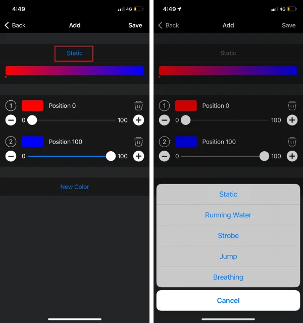 Настройте свои собственные эффекты, нажмите «+», чтобы выбрать свой любимый эффект и цвет, а затем сохраните его, сейчас
