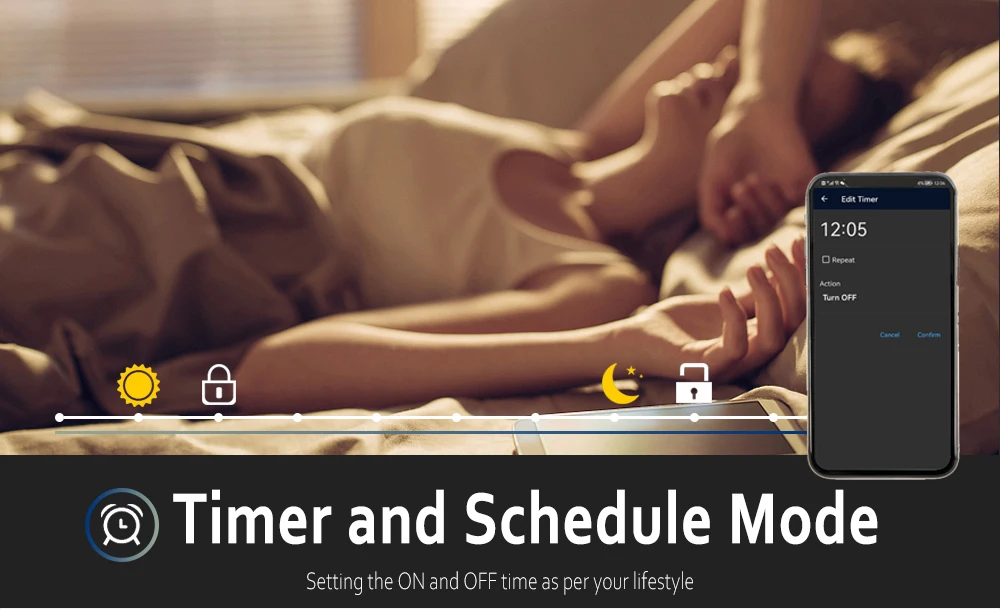 Умные Огни автоматически включаются и выключаются в определенное время с помощью функции таймера.