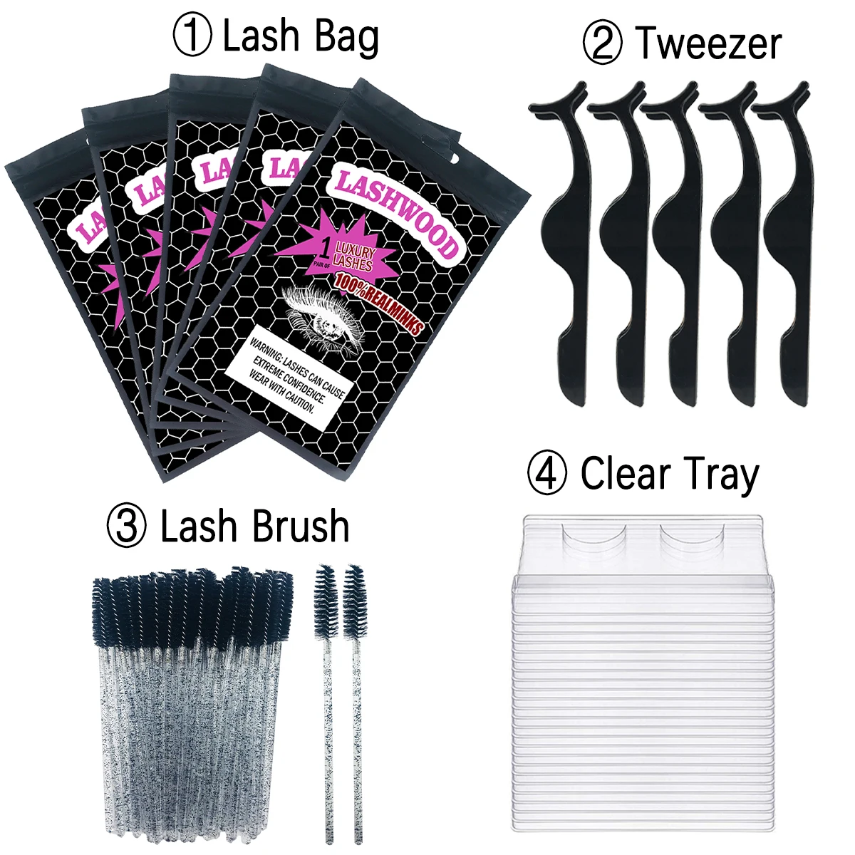 1. В комплект входит: сумка для ресниц, лоток, кисть и пинцет