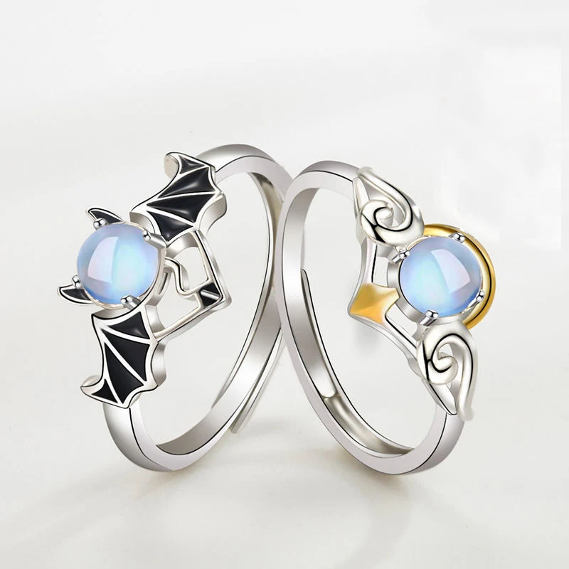 Модные кольца для женщин и мужчин с ангельским дьяволом и лунным камнем, обручальное кольцо серебряного цвета с лунным камнем, Ювелирное кольцо для влюбленных, подарок