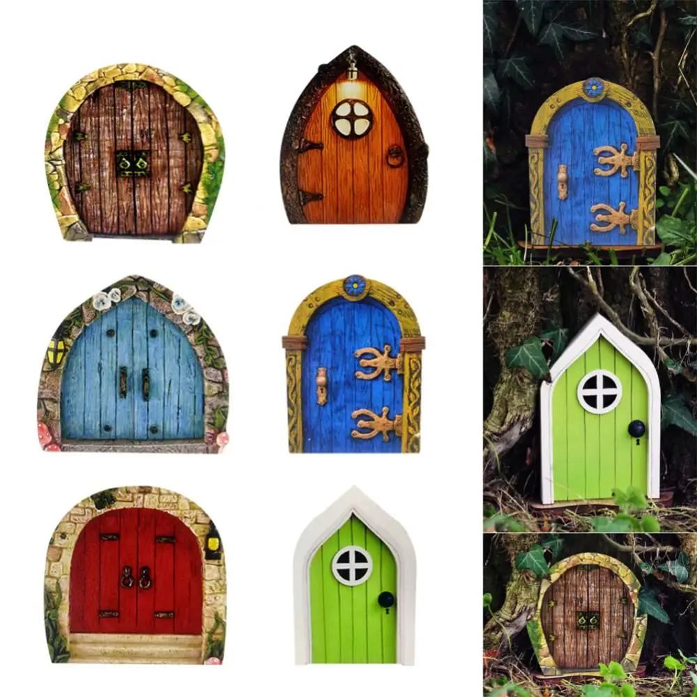 6 шт. миниатюрные сказочные ворота двора скульптура двора деревянная сказочная карликовая оконная дверь для дерева гном искусство сад украшение статуи