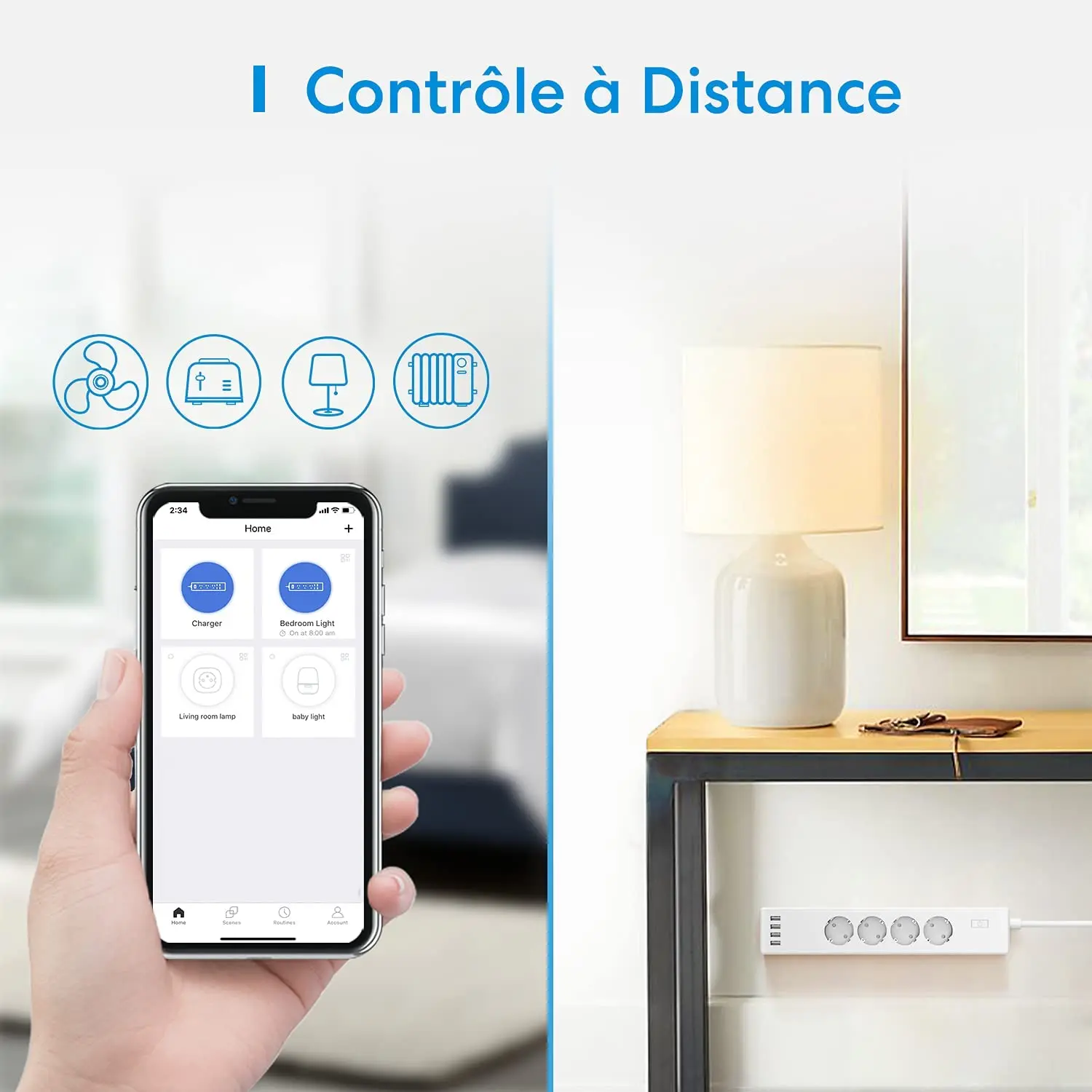 Удаленный доступ-Управляйте своей умной полосой питания из любого места с помощью планшета или смартфона с помощью бесплатного приложения Tuya.