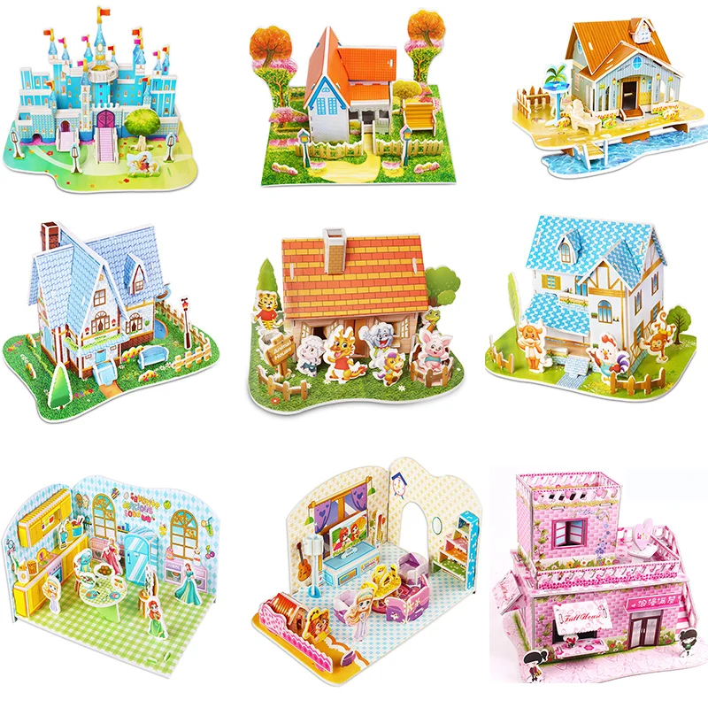 3D Пазлы для детей замок Монтессори развивающие игрушки сад принцесса домик деревянная головоломка интересные обучающие игры для детей