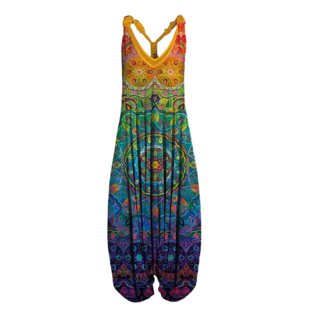 С использованием дизайна с принтом в этническом стиле этот комбинезон очень модный и винтажный, он позволяет выглядеть более элегантно и очаровательно.