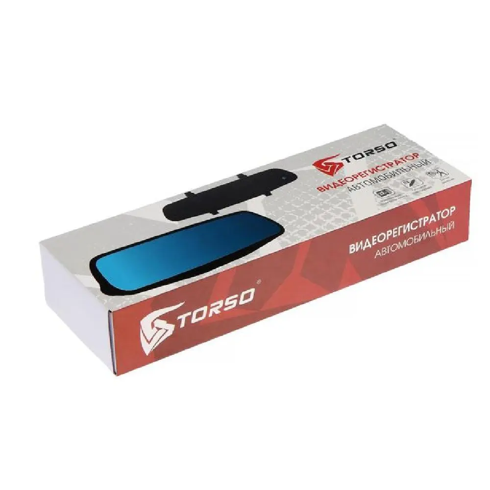 Видеорегистратор – зеркало заднего вида TORSO с двумя камерами HD и обзором 120° для автомобиля. Видеорегистратор выполнен в форме салонного зеркала заднего вида с двумя встроенными обзорными камерами с разрешением 1080 (FullHD).