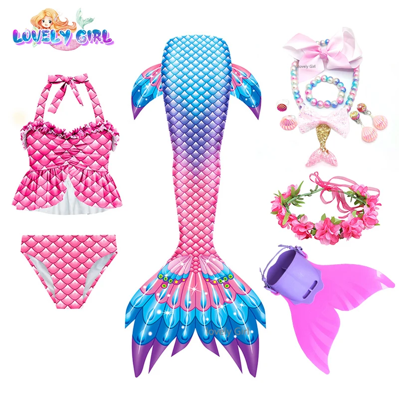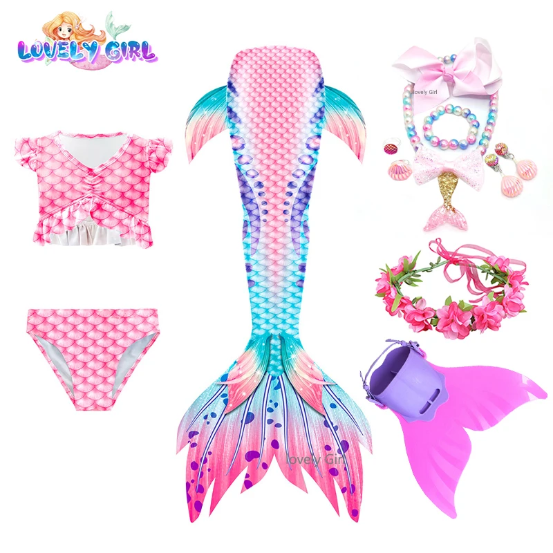 4 шт.: 1 юбка с хвостом русалки + 1 бюстгальтер + 1 шорты + 1 венок