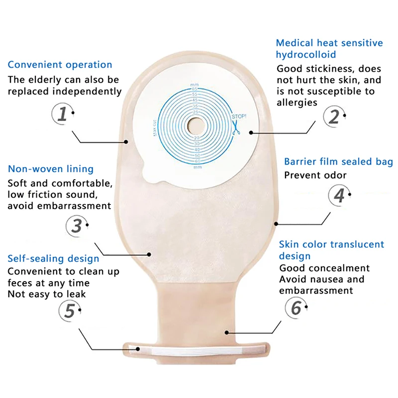 Чехол colostomy легко наносится с прикрепленными зажимами, обеспечивающими безопасность, вы можете почувствовать, как пластиковые крепежные детали запираются на место, легко опускаются и орошают.