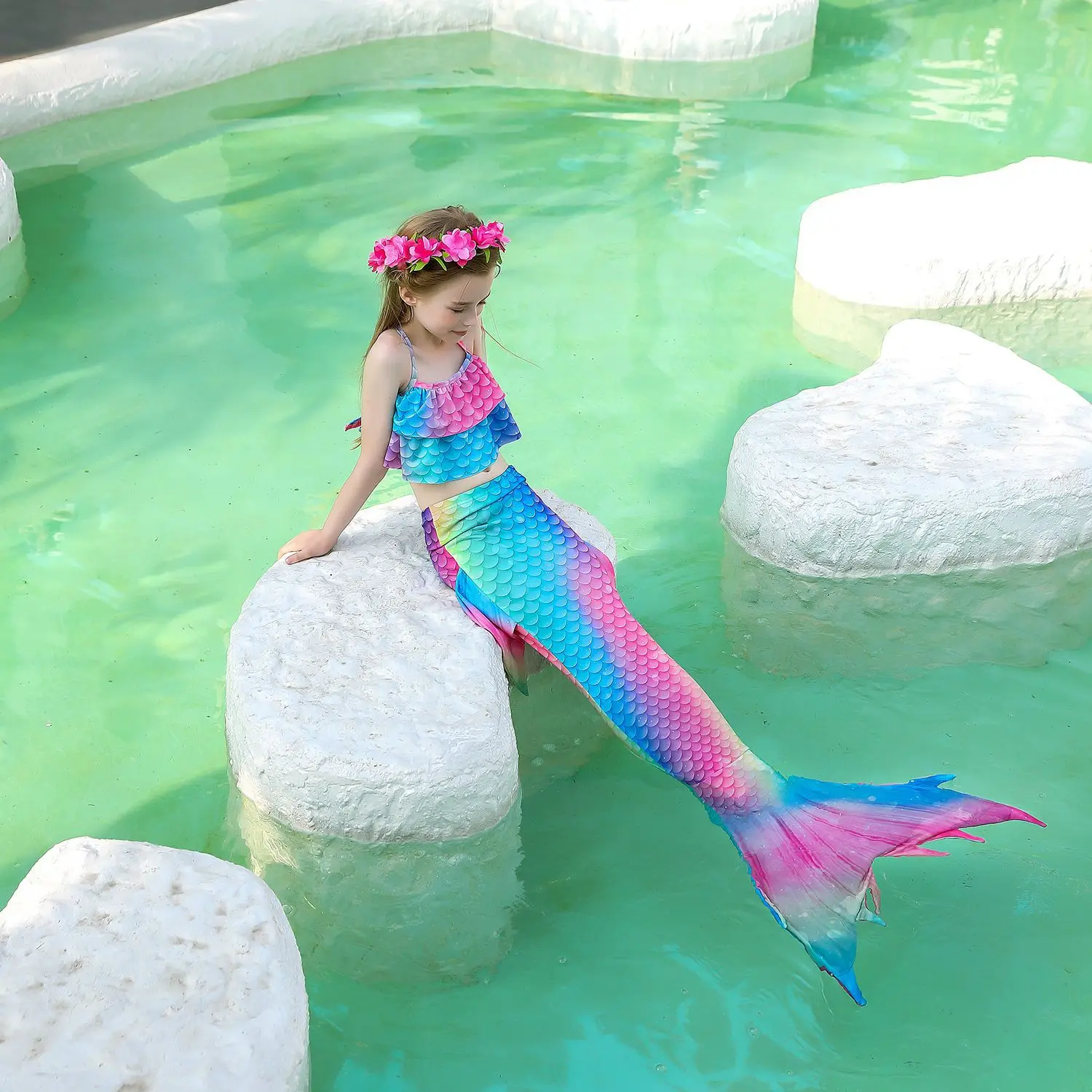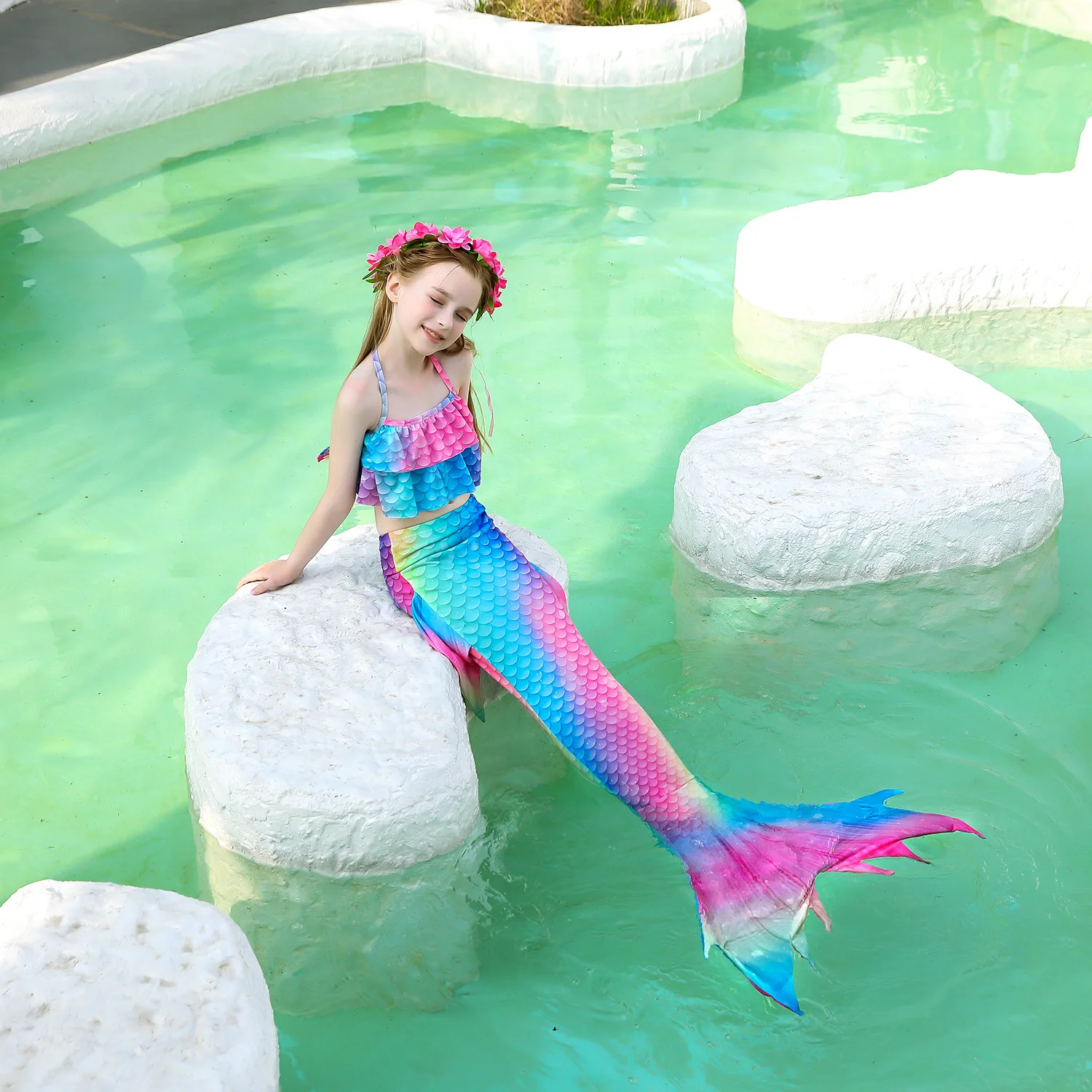 Этот продукт принимает 3d-цифровую печать, форма цветка трехмерная, не выцветает, качество хорошее, и цена высокая. Высококачественная фантомная ткань имеет хорошую эластичность и яркие цвета блестят на солнце, чтобы ребенок мог идеально изменить цвет. Русалочка, добро пожаловать на покупку