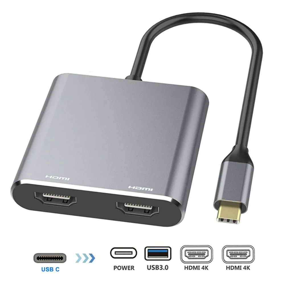 4in 1 Type-C на двойной HDMI 4K USB3.0 PD Быстрая зарядка двойной экран Расширение дисплея USBC концентратор док-станция конвертер