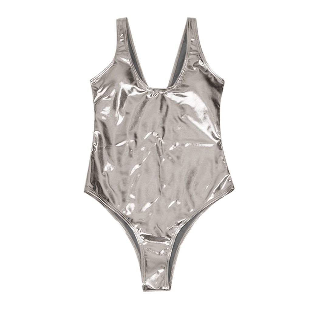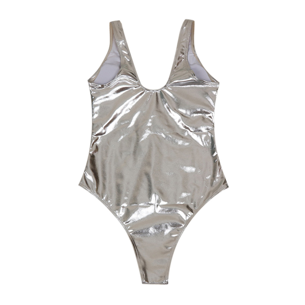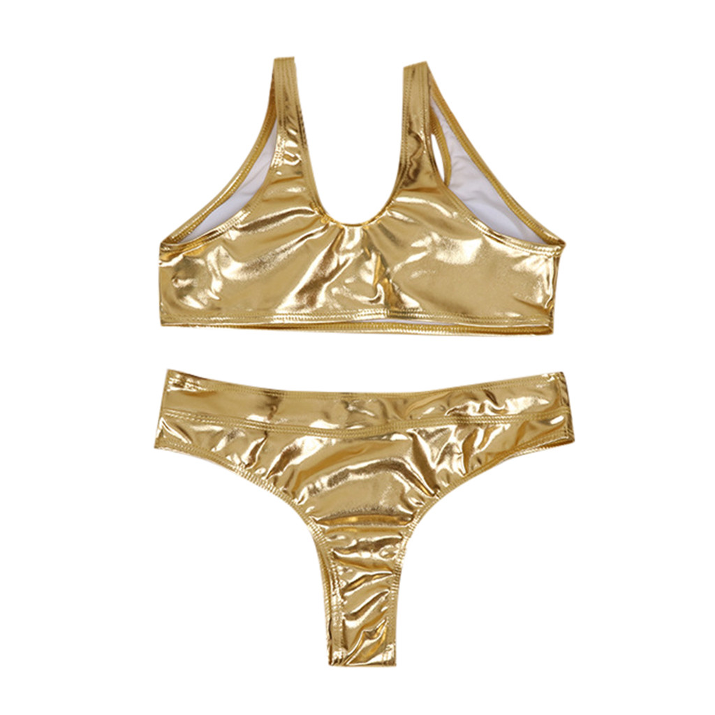 Женский Блестящий металлический купальник-бикини из двух частей, купальный костюм, комбинезон без рукавов