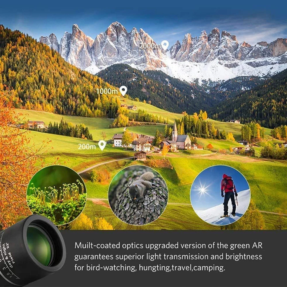 * 2. Посмотрите на вещи 40X ближе и получите четче и ярче с объективом 60 мм и объективом 16 мм. Чем больше объектив, тем больше светильник входит в монокуляр, тем ярче изображение.