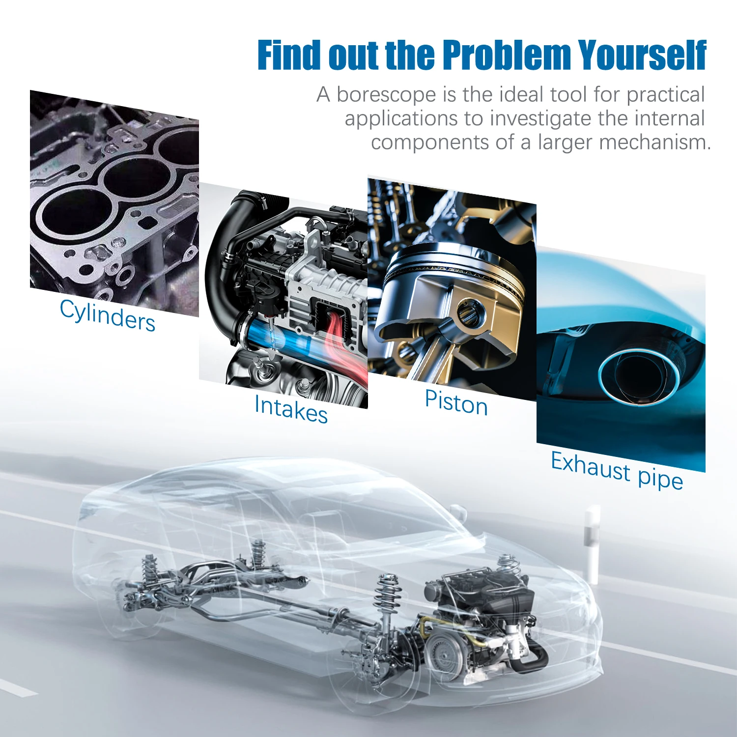 Oiiwak эндоскоп с двумя объективами является отличным инструментом для осмотра мест, которые не видны невооруженным глазом. Он широко используется в таких областях, как техническое обслуживание автомобилей, механический осмотр, Ремонт труб, осмотр бытовой техники, осмотр структуры стен, и канализационный/сливной контроль и т. д.