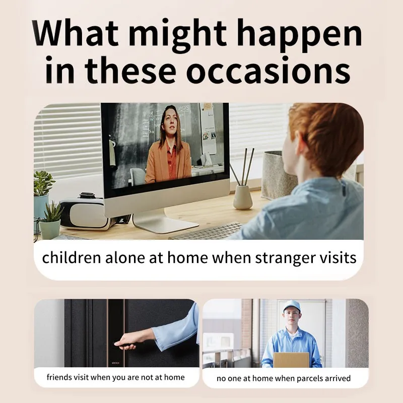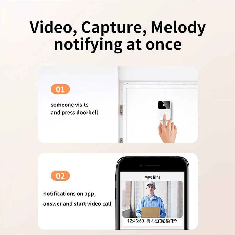 1. Когда Посетитель нажимает дверной звонок, уведомление будет отправлено на ваш мобильный телефон, вы можете ответить на него и ввести интерфейс видеозвонка, поддерживает максимальный доступ к 10 членам семьи.