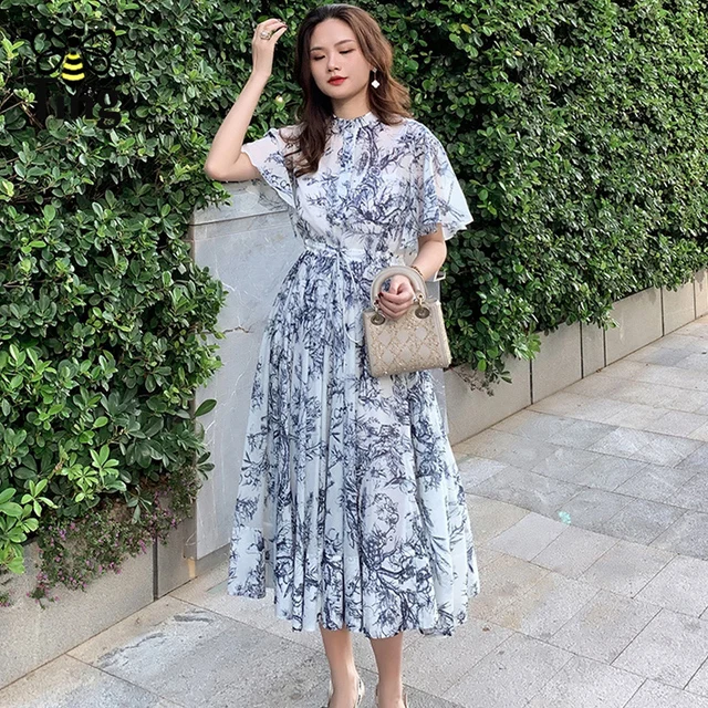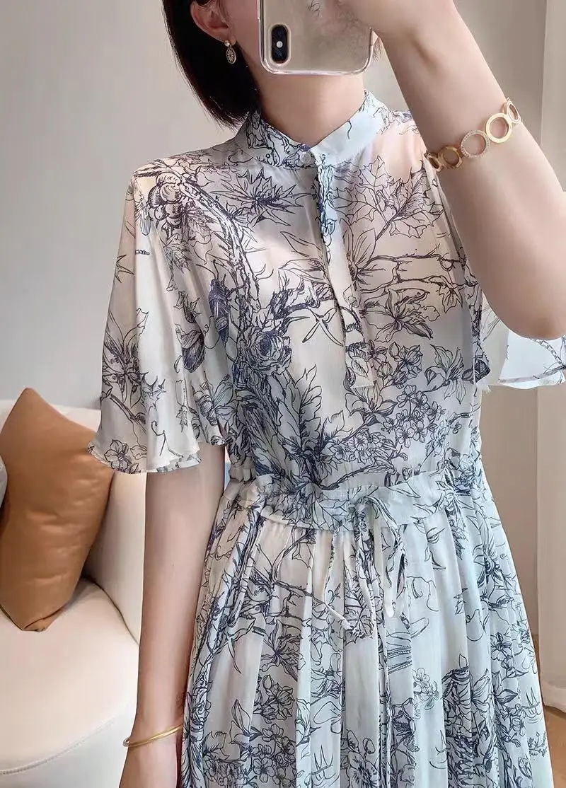 Женское шифоновое мини-платье с цветочным принтом коротким рукавом и V-образным