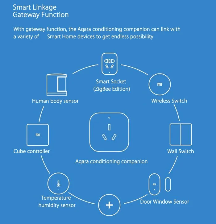 С функцией шлюза, Aqara conditioning companion может связываться с различными устройствами Smart Home, чтобы получить бесконечную возможность