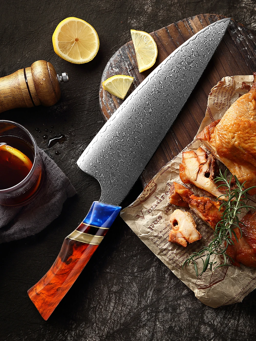 Высокое качество:Изготовлен из 67 слоев высокоуглеродистой дамасской стали, ядро VG10, твердость может достигать 62HRC, с сильной антикоррозийной, антикоррозийной и прочной