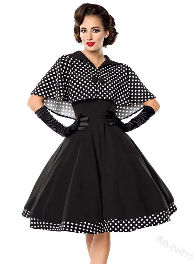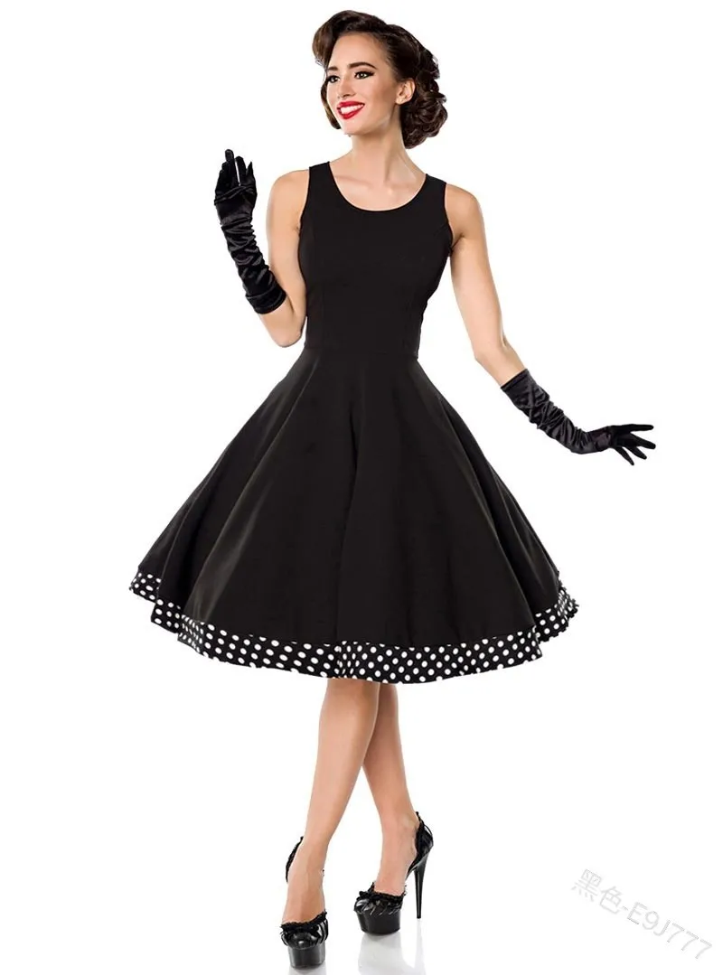 Элегантное винтажное платье Хепберн для женщин Черное Красное платье трапециевидной формы без рукавов с шалью женское ретро рокабилли 50s платье в горошек