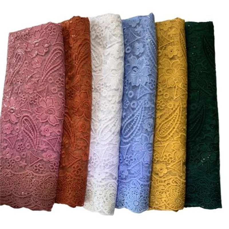 В основном мы поставляем все виды кружевной ткани с вышивкой. Такие как швейцарское кружево, кружево из 100% хлопка с вуалью, кружево из швейцарской вуали ручной работы, кружевная ткань из швейцарской вуали, французское кружево, Сетчатое кружево, кружево с блестками, бархатное кружево ручной работы. Тяжелое кружево, водорастворимое кружево. Мы также поставляем модные женские сумки, настоящий воск, супер воск Hollandais.