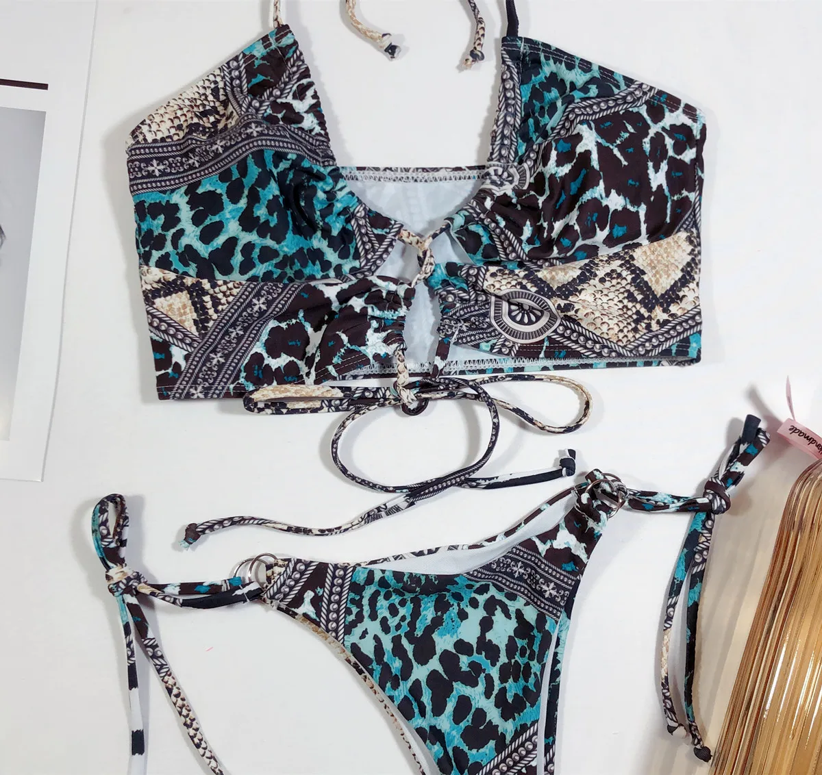 Women Split Bikini Summer Sexy Bandage Cheap Swimsuit Pit Bar Biquini High Waist Red Stitch Adjustable Push Up Triangle Bikini