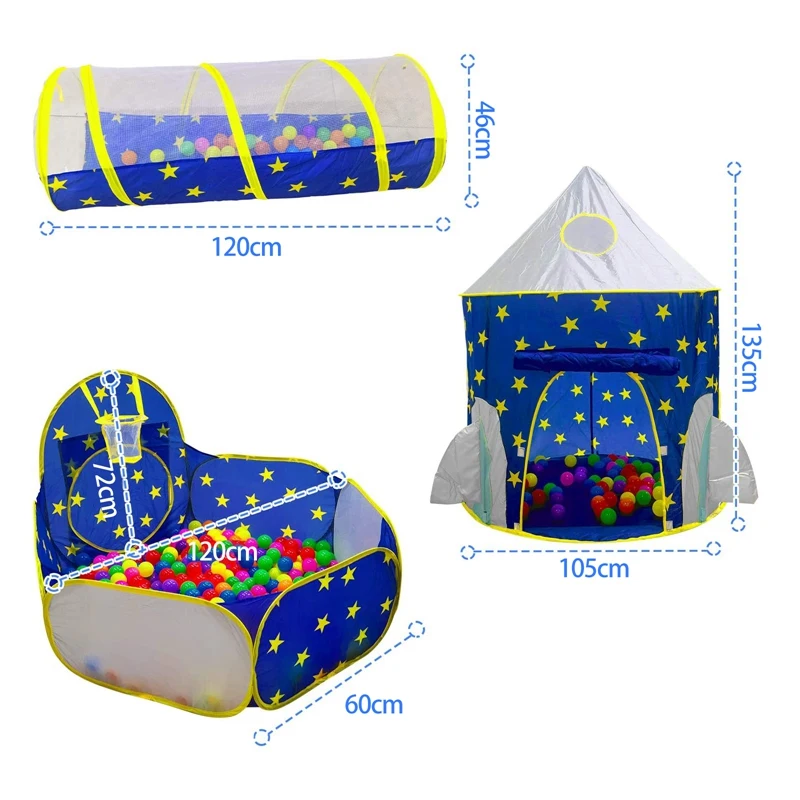 Лучшие Подарочные игрушки: тема «космический мир» 3 в 1, детская мяча «яма» предназначена для детей. Игровая палатка для девочек включает в себя детскую палатку принцессы, Детская туннельная палатка и шаровую яму для малышей. Каждый компонент можно использовать вместе или отдельно. Эта комбинация тентов для малышей-лучший подарок для малышей.