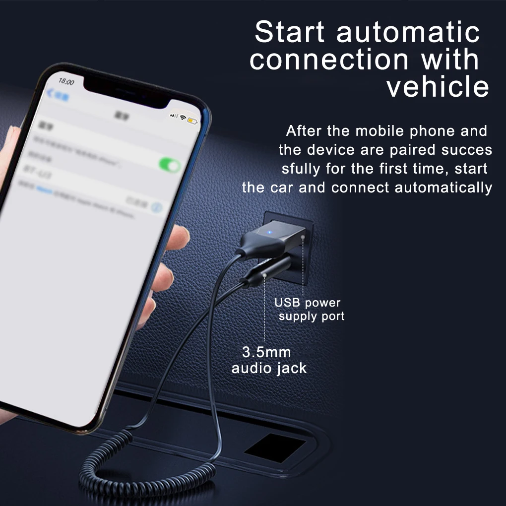 Удобный для пользователя: после первоначального подключения, этот bluetooth-совместимый 5,0 приемник будет автоматически подключаться к телефону при запуске автомобиля.