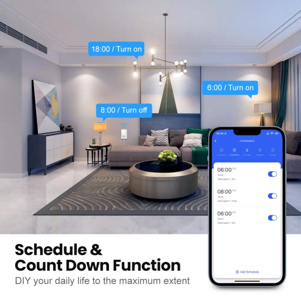 2. [расписание и функция отсчета]-вы можете создать расписание в соответствии с вашими личными требованиями, а также функцию отсчета, умную и DIY свою повседневную жизнь до максимального расширения.