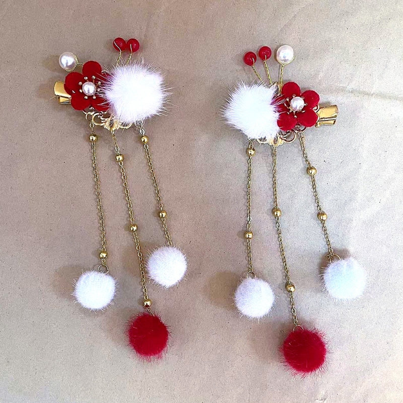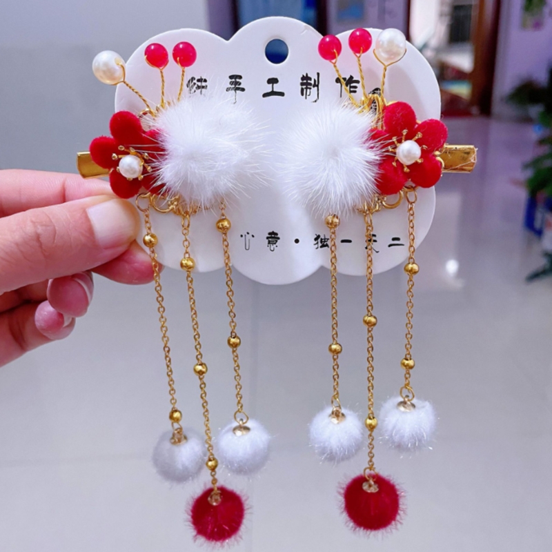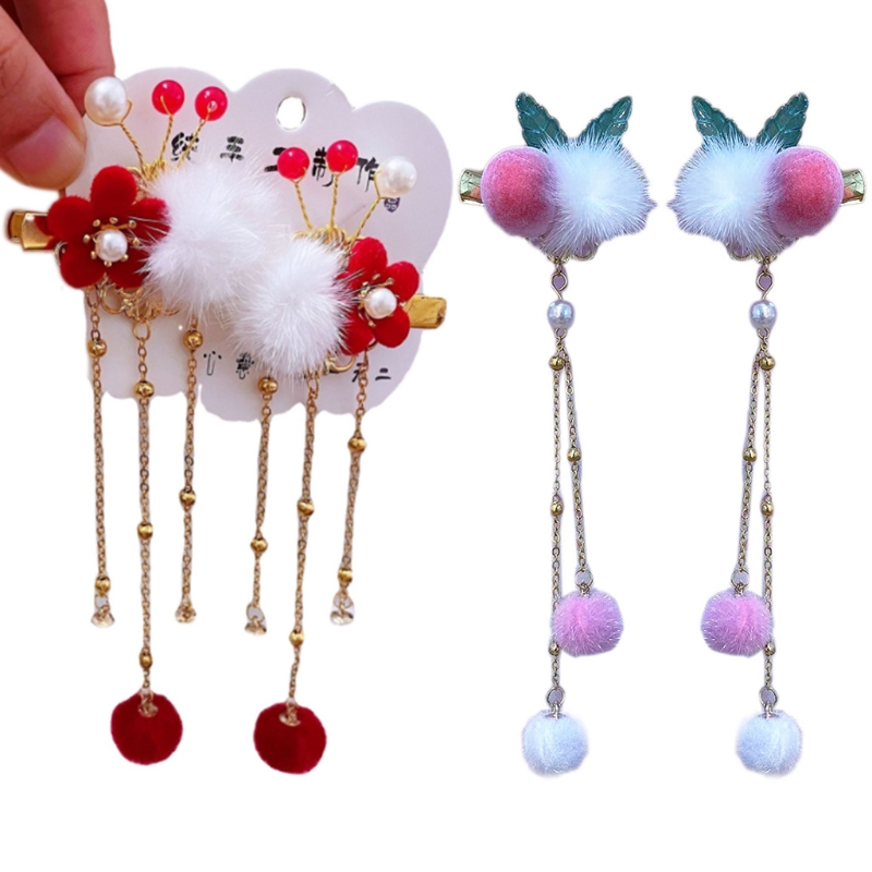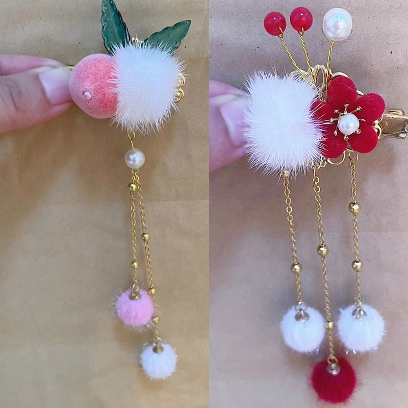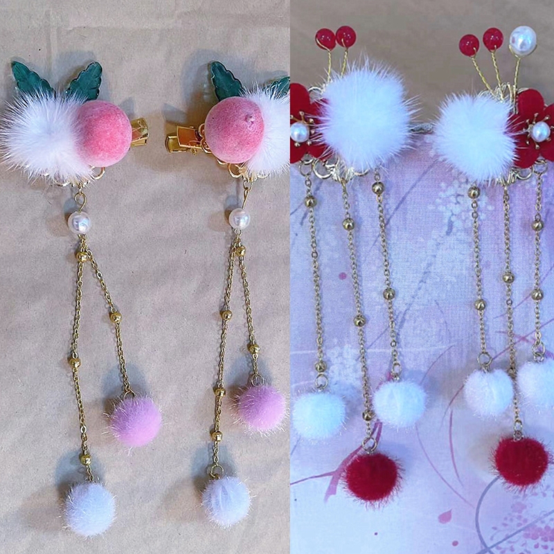Винтажный дизайн, заколка для волос с пушистыми шариками с кисточкой, некоторые с цветком или Персиком, украсят вашу прическу.