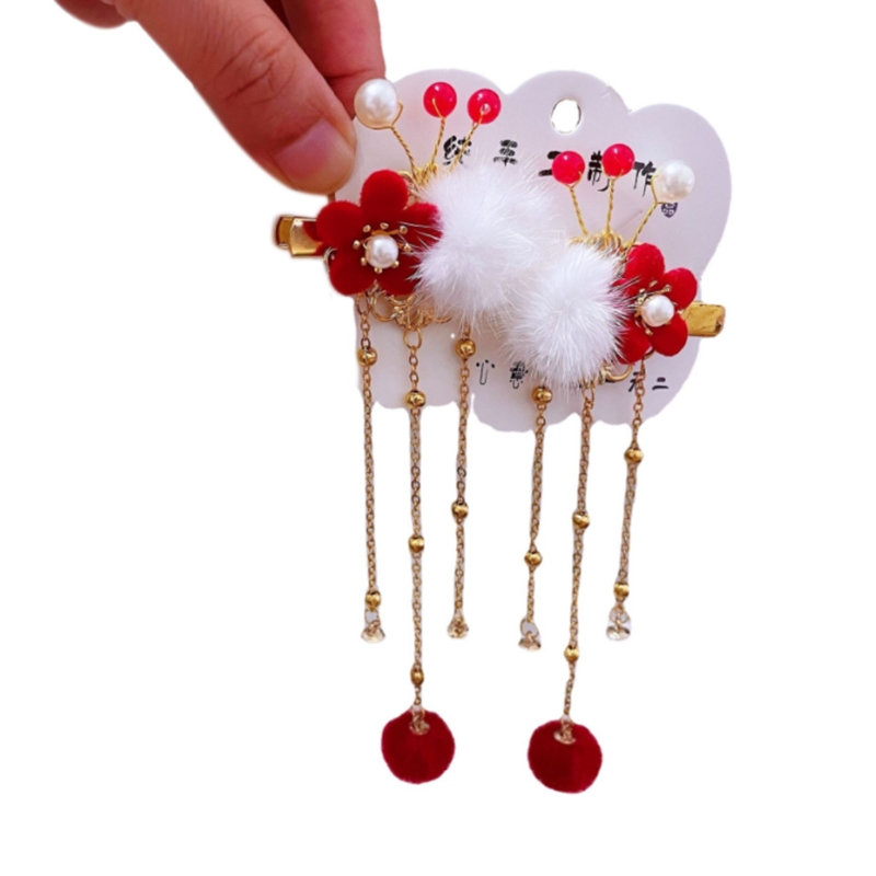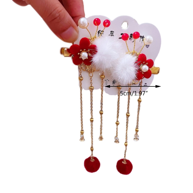 U2JF жемчужные цветочные заколки для волос с кисточками пушистые заколки для волос Китайский головной убор новый год фото реквизит заколки для укладки волос