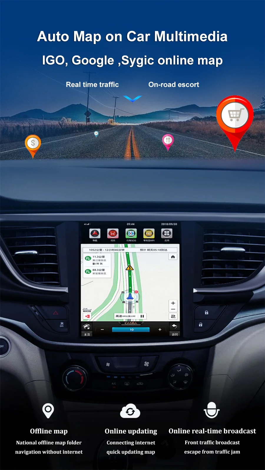 | Карты | IGO, Google ,Sygic онлайн карта | |
