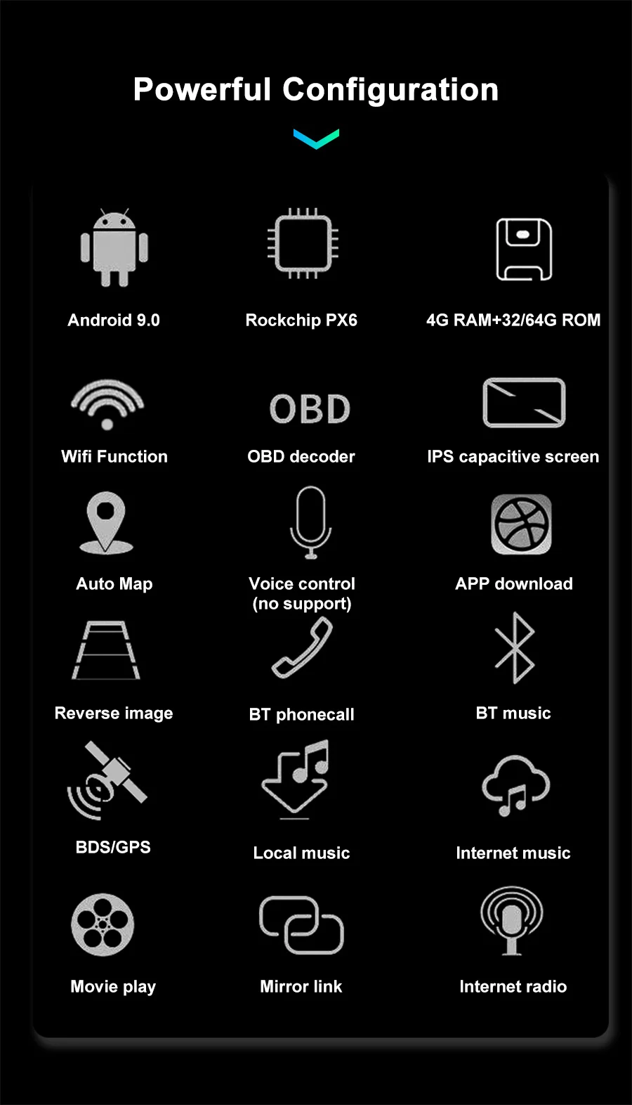 ● Система Android 9,0, процессор Cotex A72 1,8G.