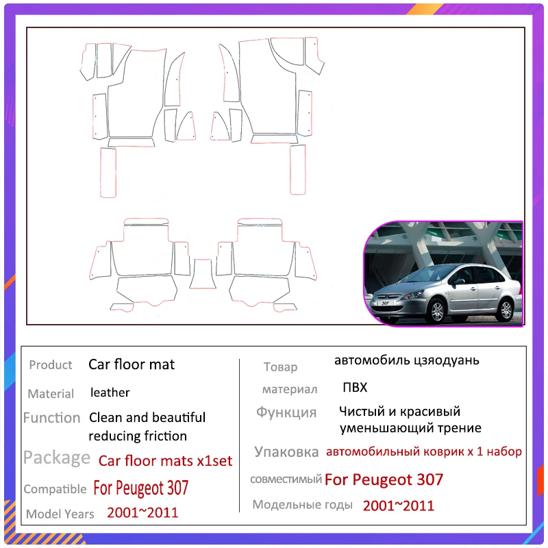 Автомобильные коврики для Peugeot 307 2001 ~ 2011