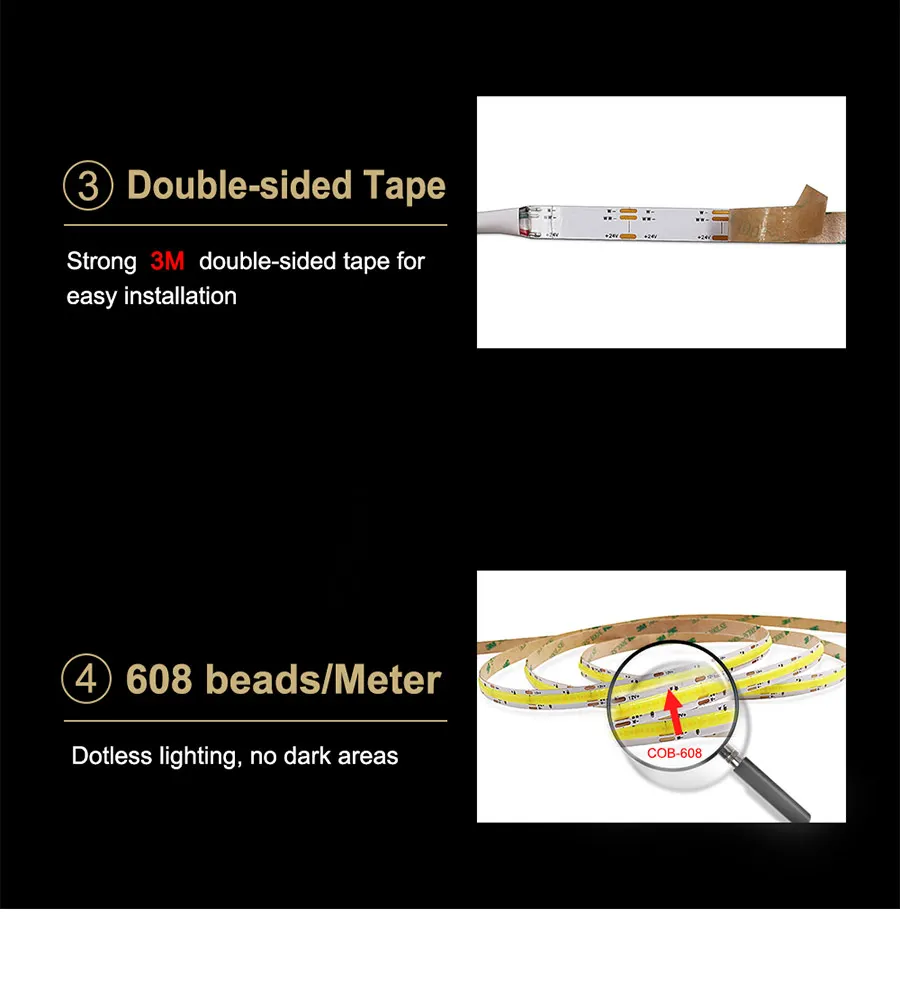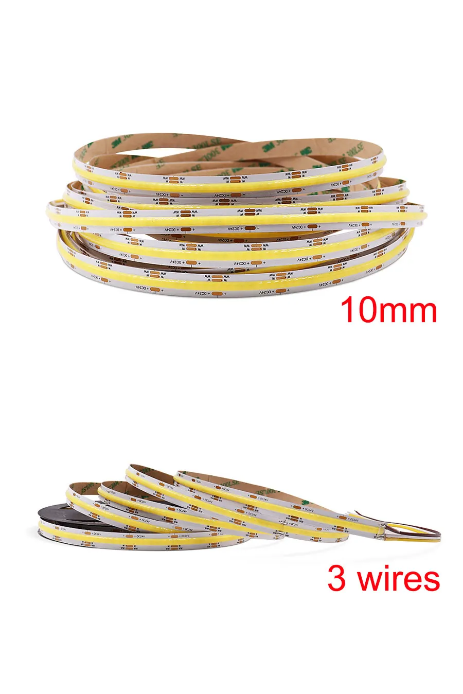 2, 10 мм COB полосы нормально 3-переплетенными жгутиками (+), CW, WW-)