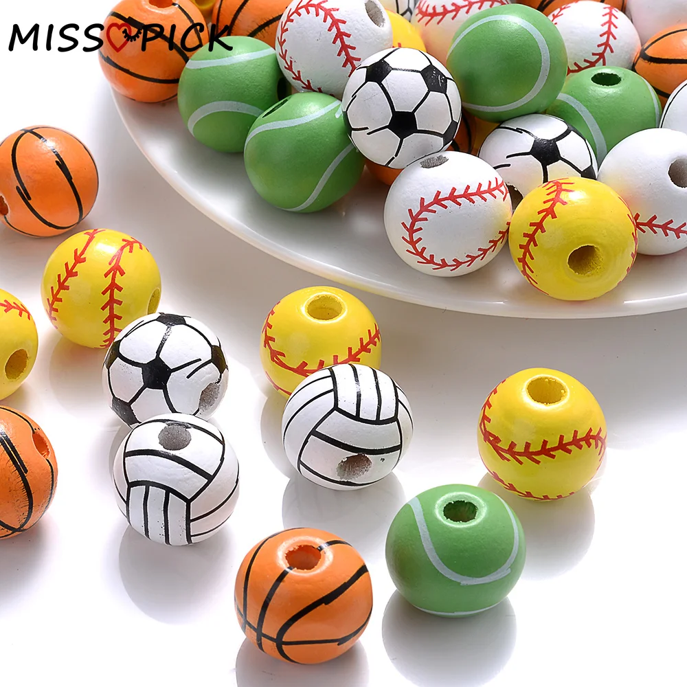 10/20/30 шт 16 мм люстра в форме баскетбольного/футбольного мяча деревянные бусины смешанный волейбол Свободные Spacer Бусины для изготовления ювелирных изделий, аксессуары, оптовая продажа