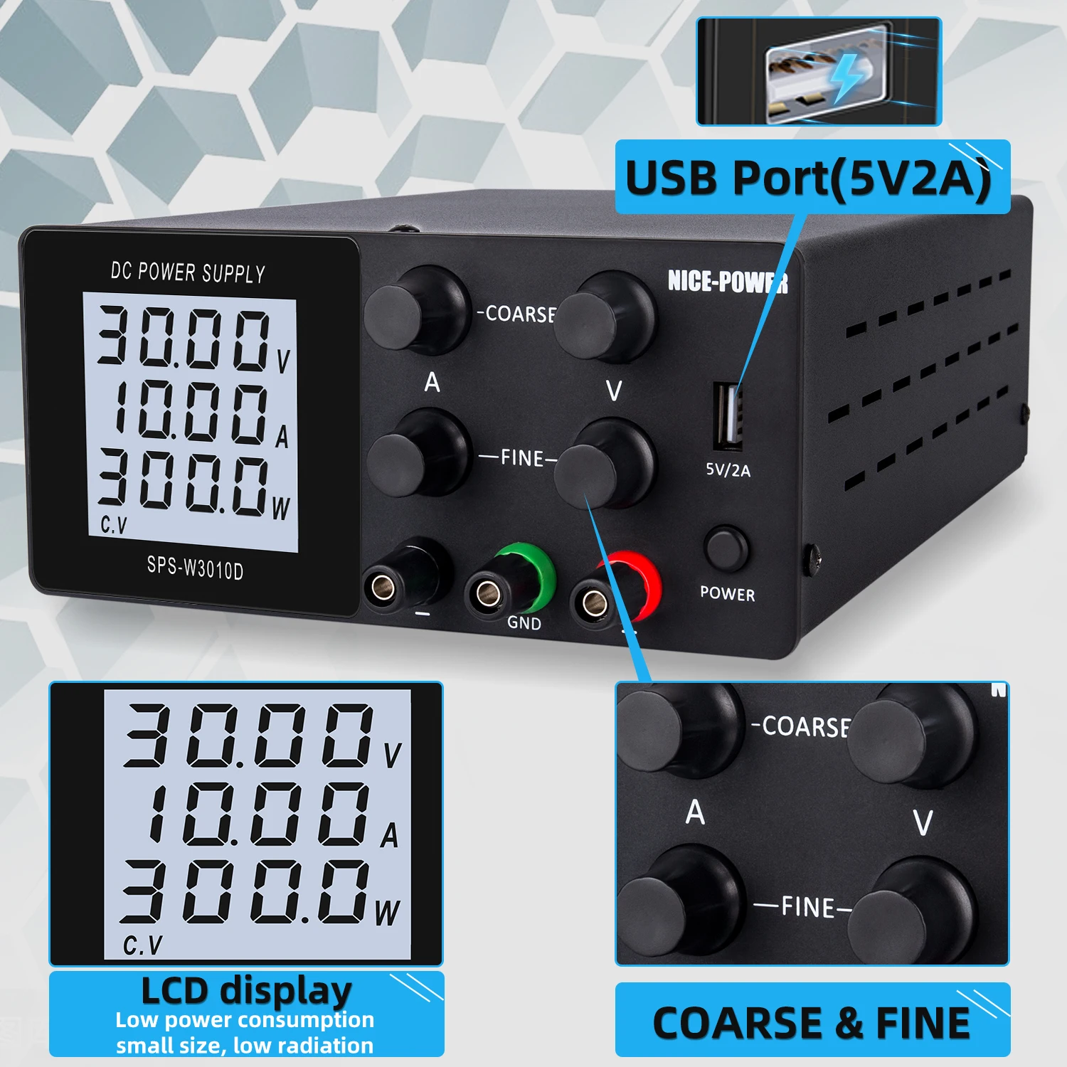 С функцией выключателя питания и кнопкой вывода тока, настольный источник питания хорошо подходит для лабораторий, школ, электрического обслуживания, diy электроники, любительского, подходит для лабораторного и промышленного использования.