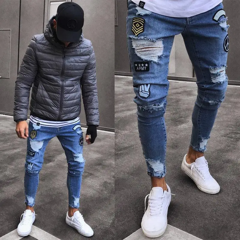 Это однотонные винтажные мужские джинсы с эффектом потертости, узкие брюки с принтом, облегающие джинсы средней посадки, Стрейчевые рваные джинсы, подходят для путешествий, бега, повседневной носки, очень стильные, повседневные и удобные джинсы. Не пропустите, если вам это нравится.