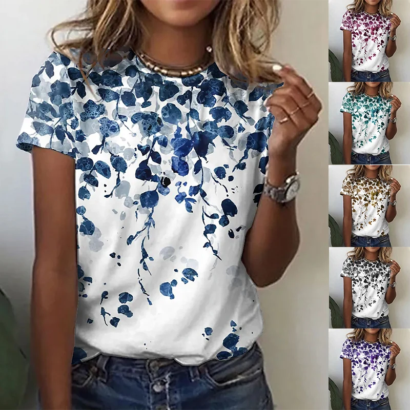Женская Цветочная тема футболка с картиной цветочный принт вырез лодочкой Базовый Топ Зеленый Синий Серый/3D печать 2022 новый большой размер футболка