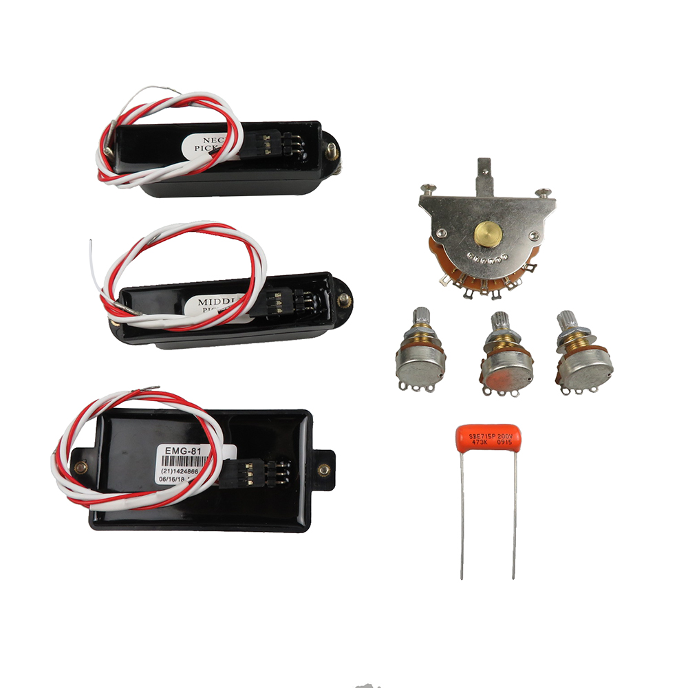 Кабели, Предварительно Проводные разделенные регуляторы громкости/тона вала, выходные разъемы, батарейный блок, винты и пружины
