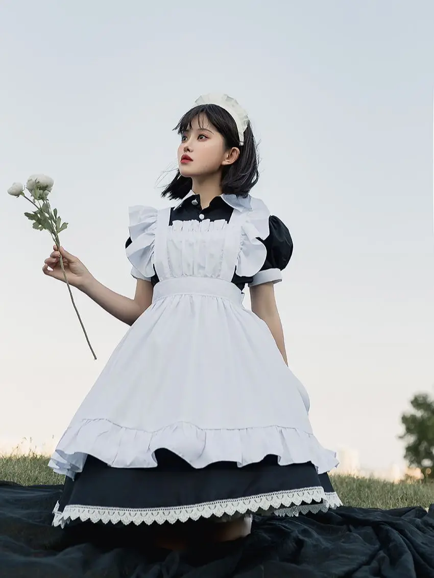 Летний костюм британского аниме в японском стиле; Черно-белый костюм горничной; Милое платье лолиты