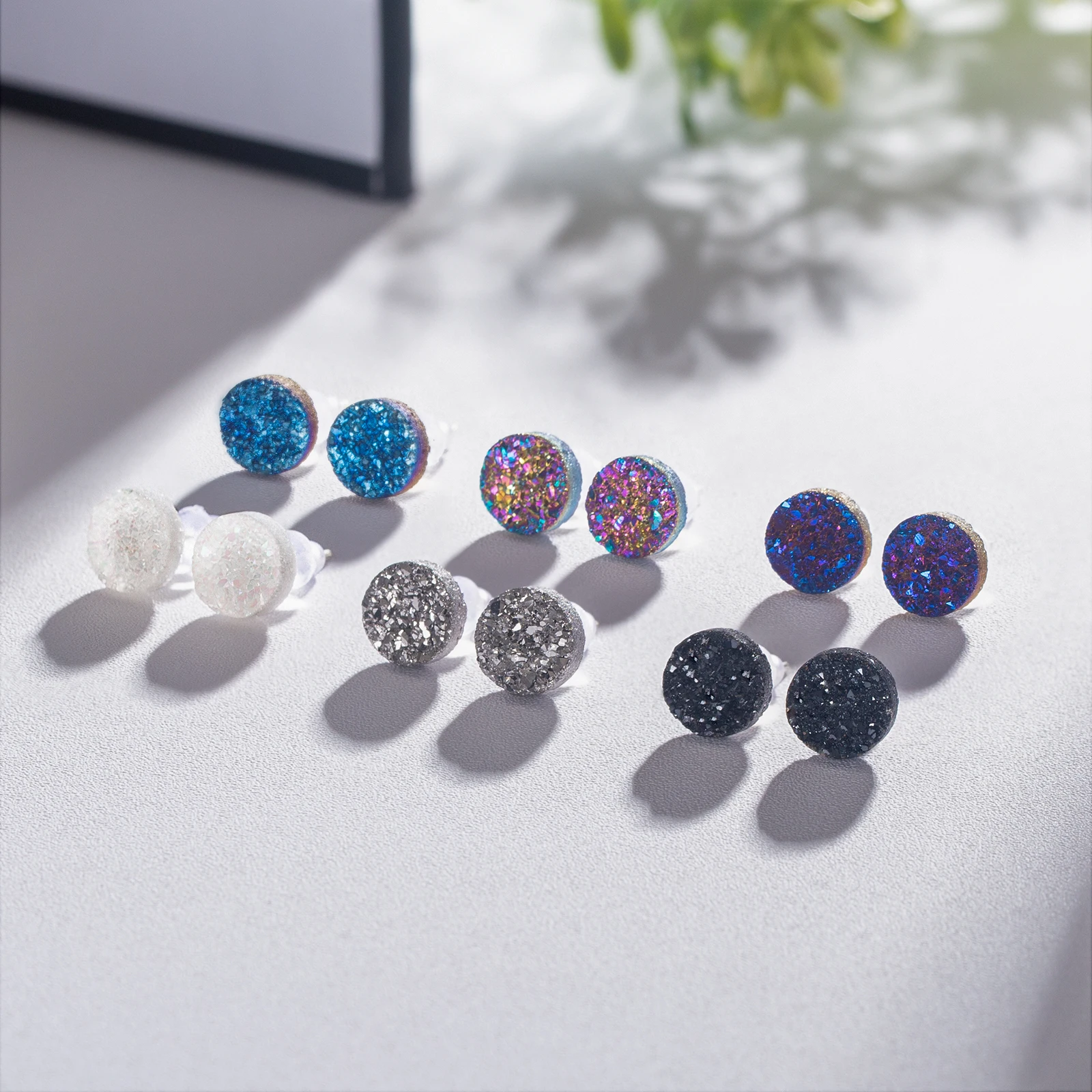 Серьги-гвоздики с кристаллами, уникальное ювелирное изделие из стерлингового серебра 925 пробы, подарок для женщин и мужчин, Круглые, Druzy, кварцевые серьги-гвоздики из агата