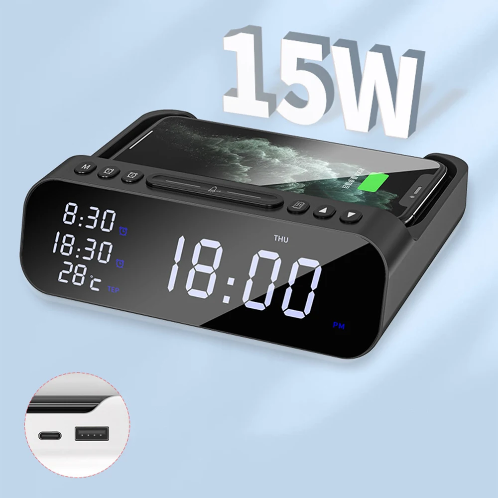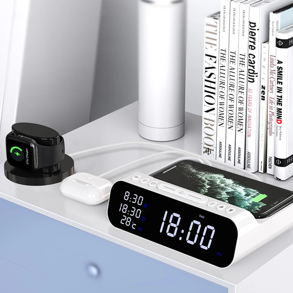 2. Беспроводная зарядка + Будильник + термометр (регулируемый) все в одном