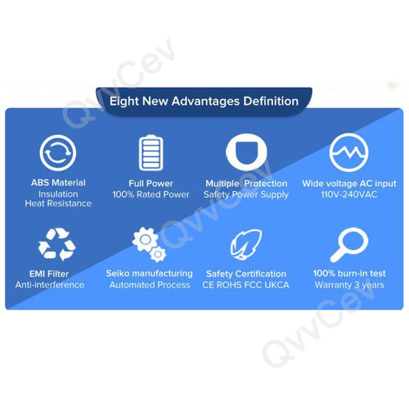 Спецификация: Входное напряжение: 110-240 В Выходное напряжение: 12 В/24 В постоянного тока (выберите тот, который необходим при размещении заказа) Выходная мощность: 12 Вт/24 Вт/36 Вт/60 Вт/100 Вт (Выберите Тот, который необходим при размещении заказа) защита безопасности: Выходное перенапряжение, защита от перегрузки по току и короткого замыкания Материал корпуса: материал ABS Рабочая температура: -20 ~ 55 ℃ стандарт безопасности: CE rohsгарантия: 2 года
