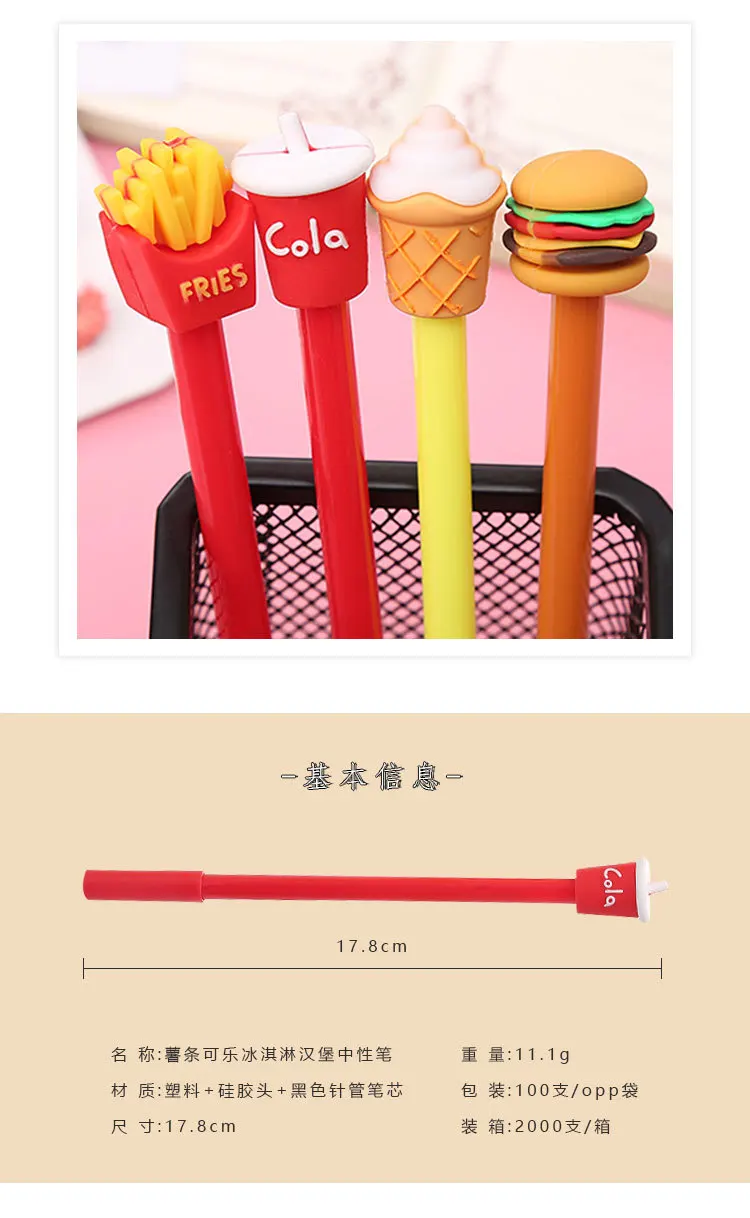 1PCS Creative French Fries Coke Burger Ice Cream Black Gel Pen Cute Student Stationery Office Supplies School Holiday Gifts