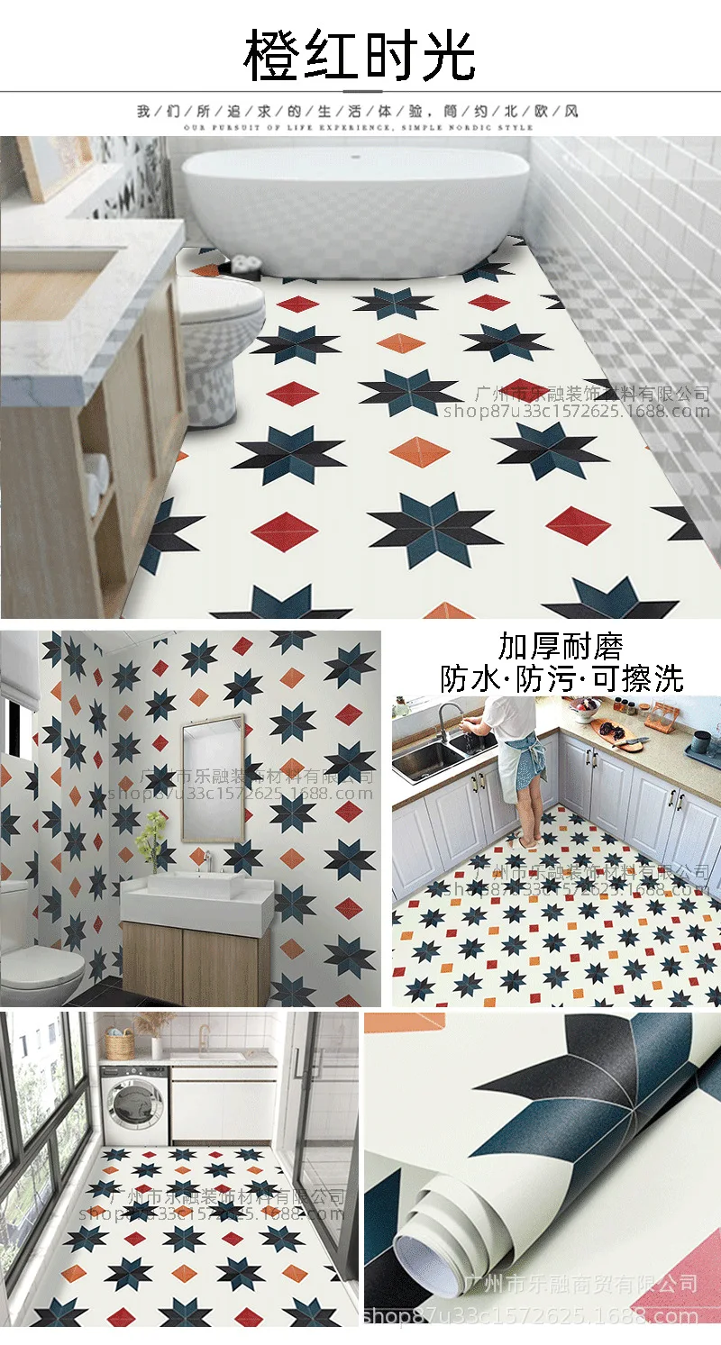 3 м/ванная комната, кухонные наклейки на пол, водонепроницаемые самоклеющиеся обои для пола, Нескользящие, виниловые, ПВХ, толстые и износостойкие